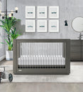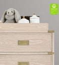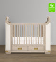 The Paris Collection takes luxury to the next level. Both ends of this crib are upholstered in stain-resistant fabric made from sustainable materials while the drawers are adorned with stunning brass hardware.