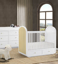 The Aspen Nursery Set features a woven cane pattern on both ends and adds sophisticated texture and timeless style to your baby's room.