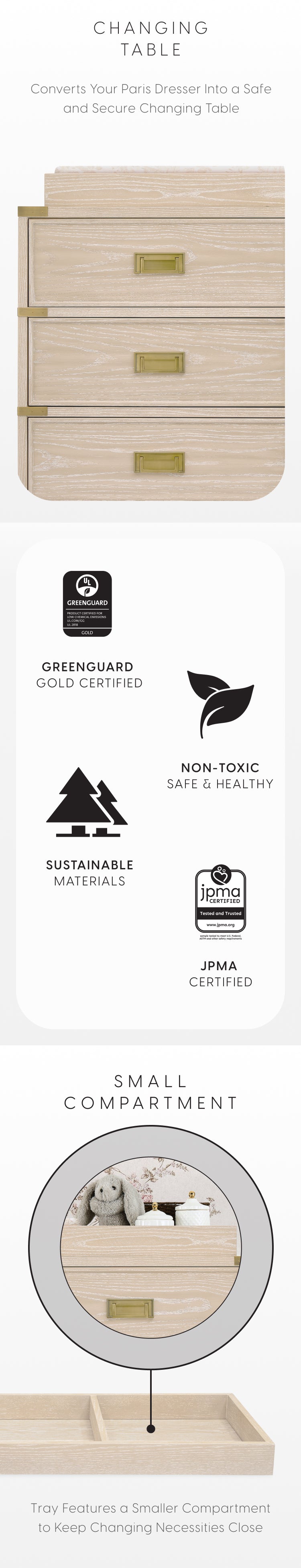 - The Paris Changing Tray is expertly crafted from sustainably sourced woods