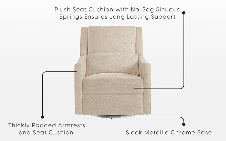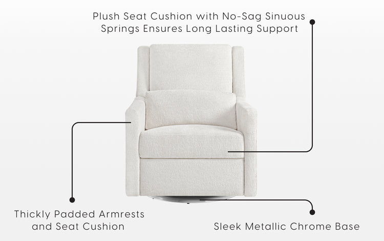 - A sleek metallic chrome base paired with a modern silhouette make this the perfect glider for the nursery, living room, primary bedroom or basement